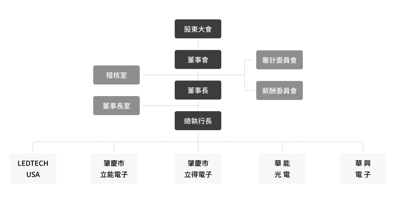 展示公司內部的組織分布與運作機制。